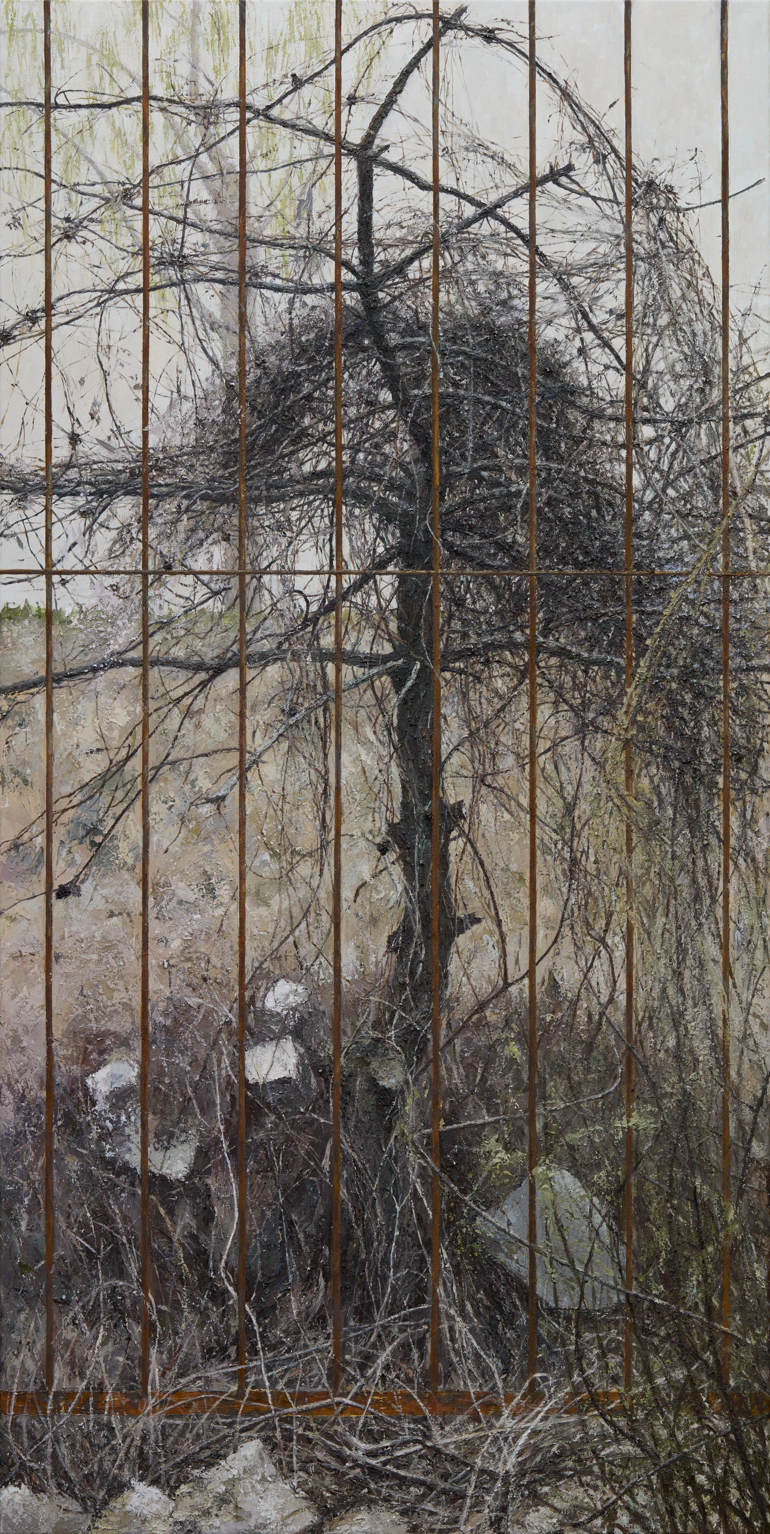 Oil, iron, and bronze on canvas, 160 x 80cm